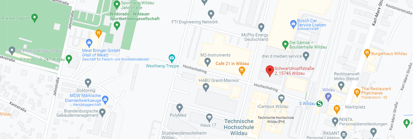 We are located in Wildau, southeast of Berlin.